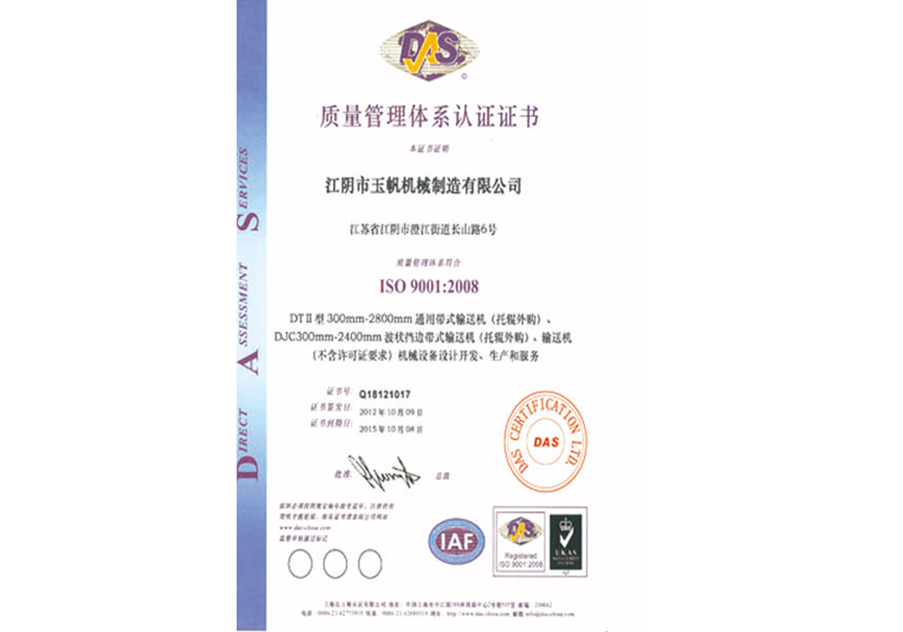 质量管理体系认证证书